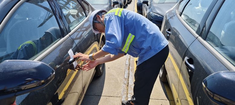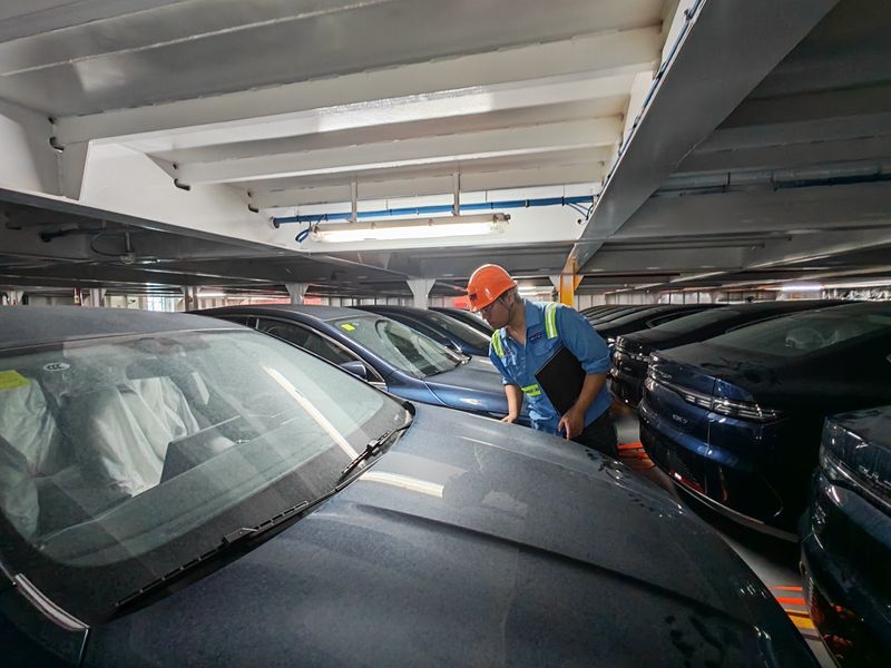 项目启动之初,外理公司提前介入筹备,组织公司业务骨干赴宁波开展汽车滚装理货业务实地技能培训。车辆集港阶段,公司严格遵循装船前的各项要求,主动对接货主,保障车辆按计划有序集港,并加班加点进行车辆质检,逐台开展车辆外观点检与电池电量核查,杜绝问题车辆流入装船环节,确保待装车辆品质合规。同时,将每台车辆信息与报关文件、车架号清单逐一比对,剔除问题车辆,确保装船车辆准确无误。装船期间,4名骨干理货员迅速登船分工协作,一方面精准清点车辆理数量,确保与申报信息完全一致;另一方面详细记录车辆停放位置并绘制船图,与船方保持密切沟通,“零时间”办理交接手续。