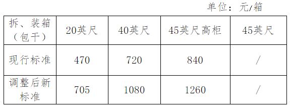 对 《目录清单(202101版)》中“二、港口作业包干费,(三)港内集装箱增值服务,2.集装箱仓库服务”中“拆、装箱(包干),内贸部分”修改如下: