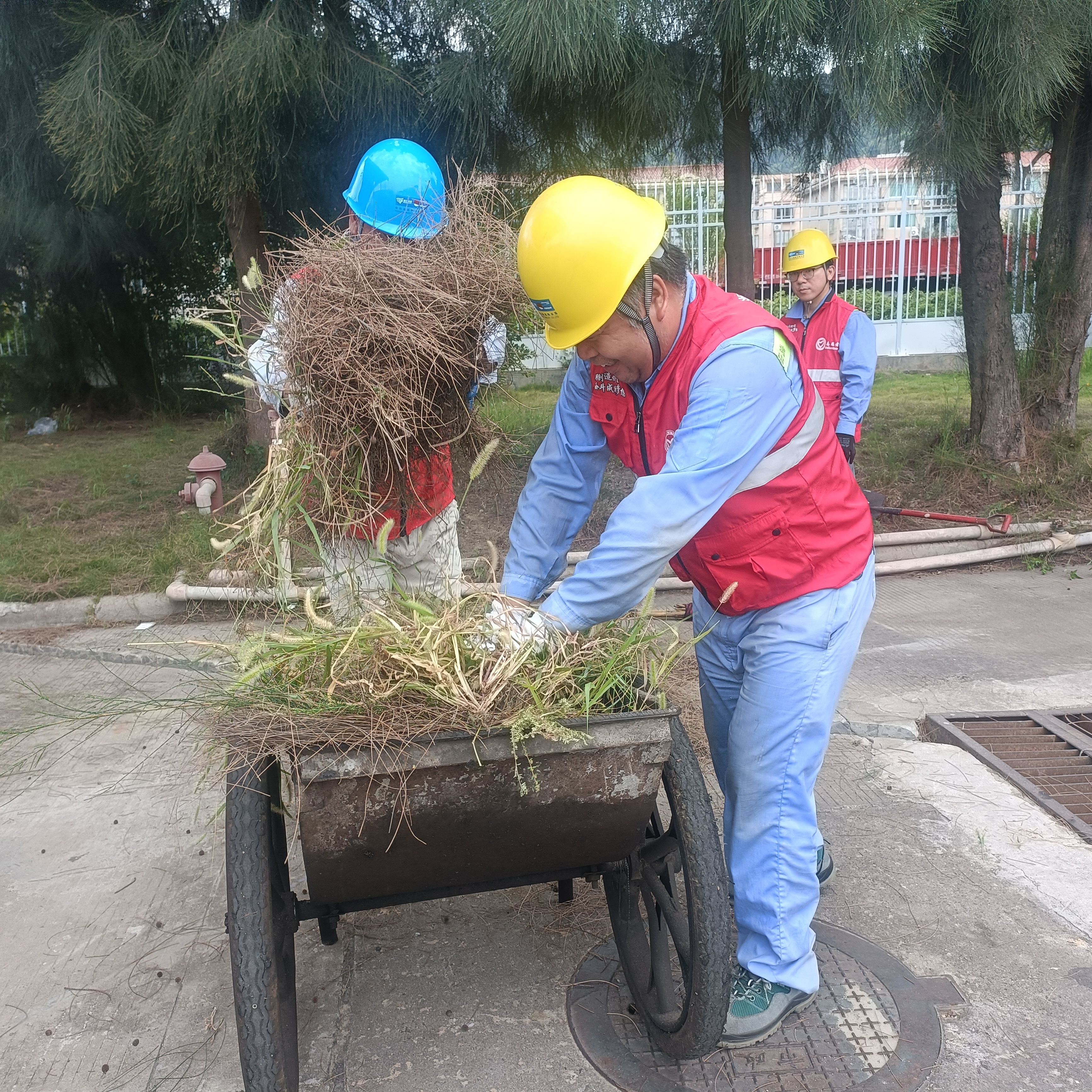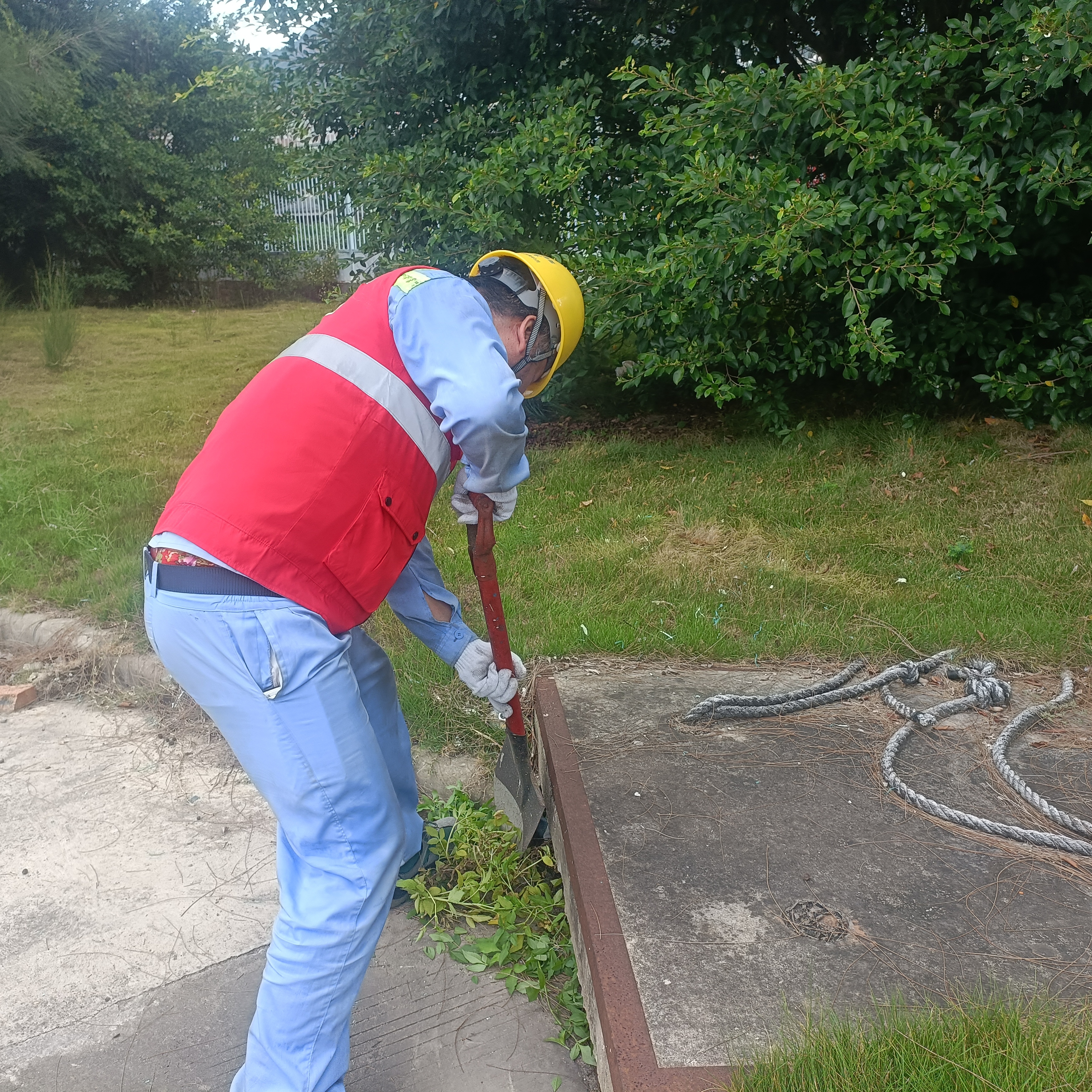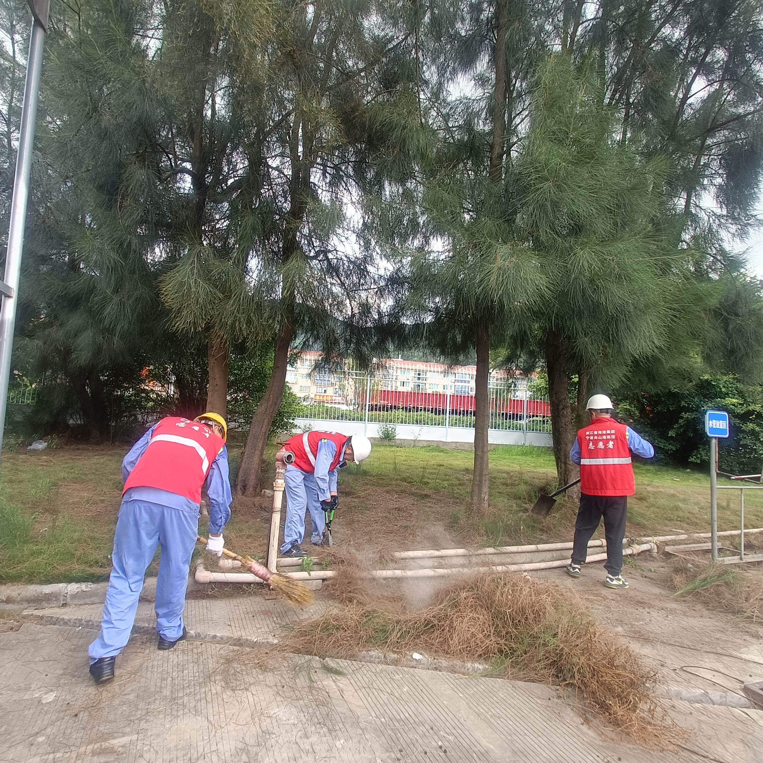 当天上午9点,志愿者们准时集合。大家身着统一的志愿服、头戴安全帽,手持铁锹、平剪、扫把等工具,精神饱满地投入到除草劳动中。大家有的用平剪修剪杂草,有的用铁锹铲除缝隙里的枯枝,有的负责清运垃圾,尽管热得汗流浃背也毫无怨言,充分发扬了共产党员不怕脏、不怕苦、不怕累的优良作风,现场一派热火朝天的劳动景象。经过2个多小时的奋战,大片区域的杂草被清除干净,港区环境焕然一新。