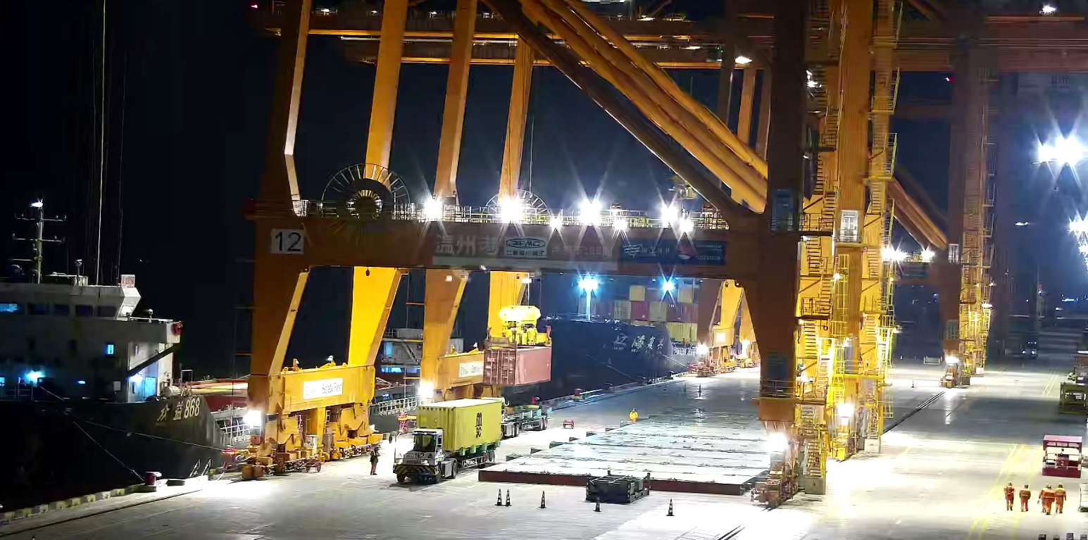从状元岙公司办公楼的高处向外望去,可以看到生产一线热潮涌动,机械林立、车船如织。门机、桥吊、龙门吊司机各司其职,争分夺秒抢卸快装。中控调度中心通过数字化平台实时监控泊位与堆场状态,科学调配生产资源,实现船舶即靠即卸、即装即走,集装箱精准落位、快速转移。针对外贸进口低冰镍吨袋作业,现场优化吊装工艺,采用吊具与叉车协同作业,在保障安全的前提下有效提升单钩作业效率。据统计,2月16日至2月23日(除夕至初七),累计完成集装箱吞吐量2.4万TEU,与去年同期相比增长104.09%,成功实现逆势增长;此外,还完成外贸进口低冰镍(2艘次)共0.45万吨,以一份高效亮眼的成绩单开启新年生产征程。